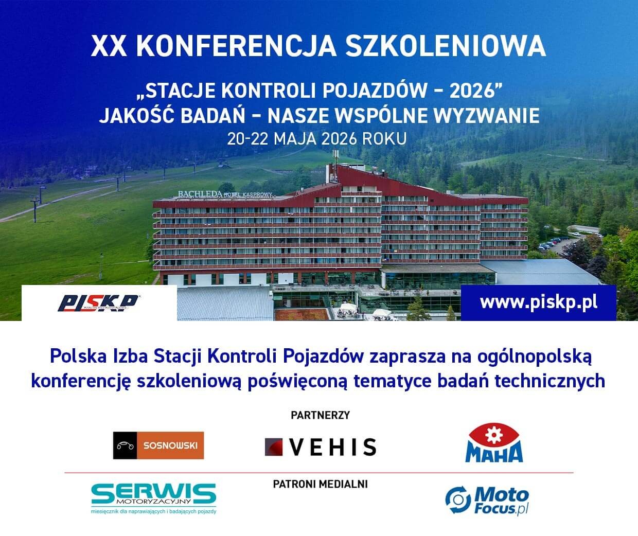 Konferencja Szkoleniowa -“Stacje Kontroli Pojazdów” to cykliczne wydarzenie, które odbywa się w okresie późno wiosennym. Konferencja jest miejscem spotykań przedsiębiorców prowadzących stacje kontroli pojazdów, przedstawicieli władz, starostw, urzędów nadzorujących działanie stacji i pracę diagnostów, uprawnionych diagnostów, a także innych osób i podmiotów związanych z branżą badań technicznych pojazdów.